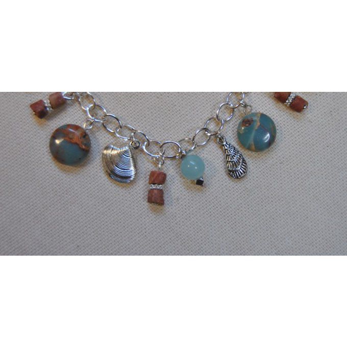 Bracelet à thème COQUILLAGES... Association de perles en terre cuite, perles en résine et perles en pierre naturelle (jaspe impérial).