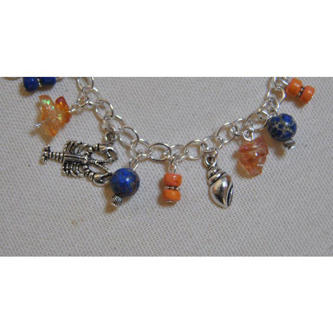 Bracelet à thème CRUSTACES... Association de perles en bois de coco, perles en verre et perles en pierre naturelle (jaspe impérial).