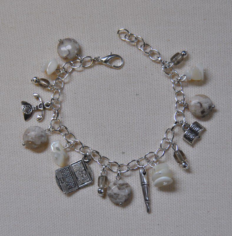 Bracelet à thème SECRETAIRE... Association de perles en verre artisanal, perles en nacre blanche et perles en pierre naturelle (feldspath).